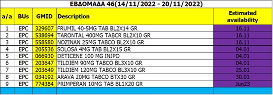 Ακολουθεί η λίστα με τα προϊόντα της SANOFI που είναι σε έλλειψη, καθώς και η πιθανή ημερομηνία αποκατάστασης της έλλειψης.